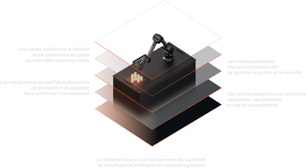 Des solutions robotiques Physical AI-ready capables de percevoir leur environnement, s’adapter aux variations et améliorer la performance des systèmes automatisés.